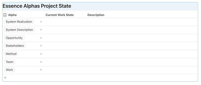 Необходимо получить таблицу Essence Alphas Project State, в которой