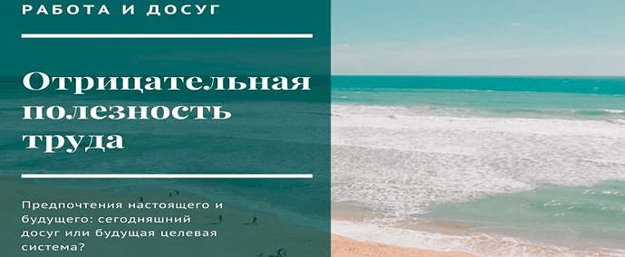 Почему человек часто предпочитает отдыхать, а не работать? Одно из объяснений - это принцип отрицательной полезности труда, согласно которого люди предпочитают досуг труду. При прочих равных, человек предпочтёт досуг, чем выберет работу или учёбу. Экономисты считают, что люди занимаются трудом только потому, что он опосредованно приносит бОльшие выгоды, чем досуг. То есть в будущем человек может удовлетворить предпочтение , которые выше рангом, чем текущие предпочтения.