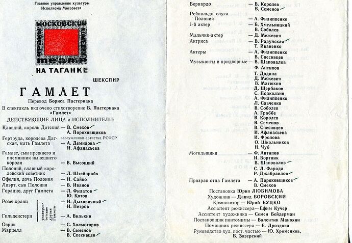 Программка в театре содержит важнейшую информацию: «действующие лица и исполнители»: