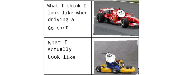 - В каждом заезде (менялись машинами, каждый раз была новая, все разные) пока стояли калибровал усилия на педалях: нажимал на газ, на тормоз и наблюдал за ощущениями в теле и усилиями точках контакта.