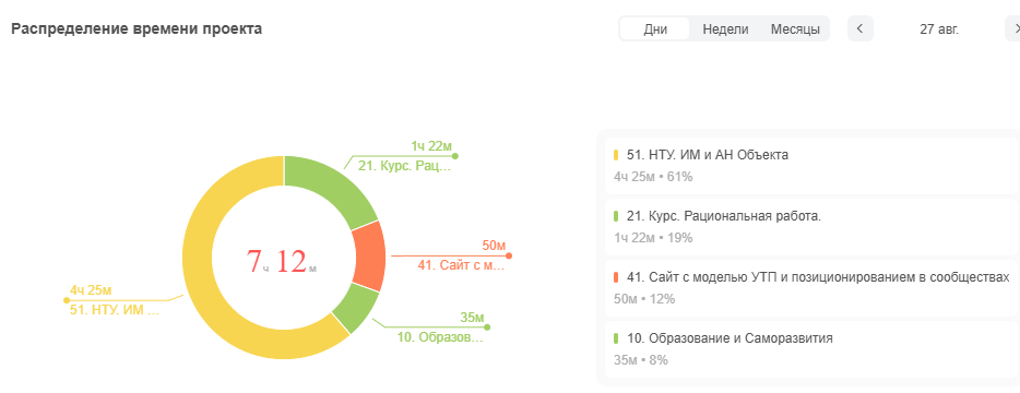 - удается удерживать внимание на саморазвитии, учете времени по работе и по образованию