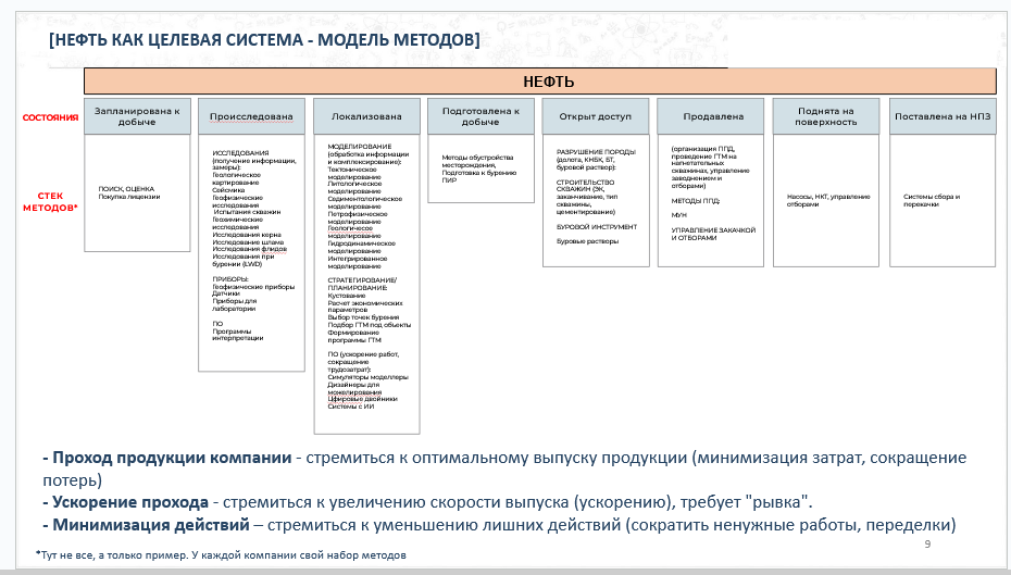 Рассказать нефтяникам (инженеры, менеджеры, возможно топ-менеджеры) как современный системный подход помогает быстро создавать/развивать методы/технологии, связанные с разработкой нефтегазовых месторождений и как это все влияет на проход продукции нефтяной компании (ускорение, рывок).