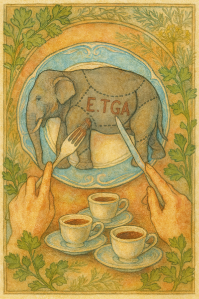 Что с таким делать при текущих скромных возможностях и меня, и неестественного интеллекта от GPT-5 Pro (а это до сих пор топовая модель) работать с такими объёмами не-кода? С кодом-то проще, он же формальный. А тут – полуформальный текст, да ещё и по-русски как задание для пополнения и рефакторинга англоязычного FPF. Работает тут старинный рецепт: “Как съесть слона? По кусочку за раз! Запивая кофе”.