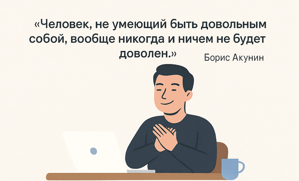 В противном случае, как предупреждает Акунин, неудовлетворённость станет стилем жизни, и никакие внешние успехи её не компенсируют. Поэтому я хвалю себя ежедневно, и много — и это помогает не скатываться в самообесценивание, а держать курс.