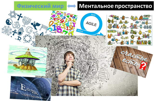 С помощью ментального пространства происходило и происходит сближение людей для достижения общих целей. Не всегда, правда, позитивных. Но результат налицо: люди сумели создать ментальное пространство, чтобы лучше моделировать физический мир. Человеческая модель действительности оказалась лучше, чем у животных. Поэтому человек смог создать развитую цивилизацию.
