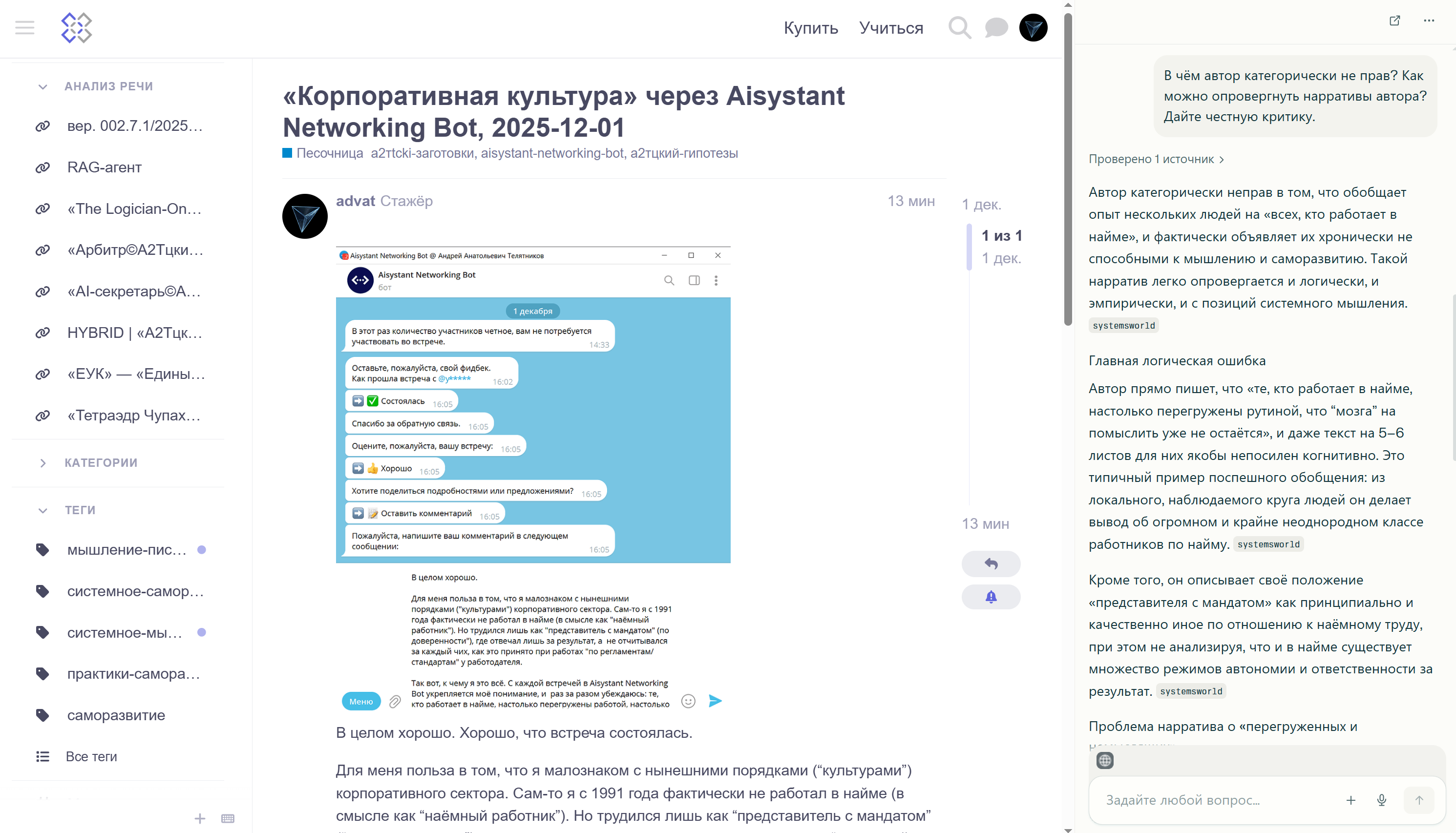- «Корпоративная культура» через Aisystant Networking Bot, 2025-12-01