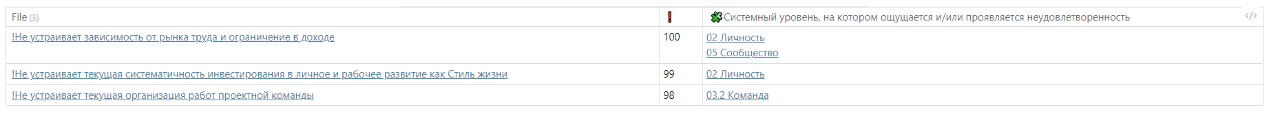 Текущие Неудовлетворенности по системным уровням и приоритетам