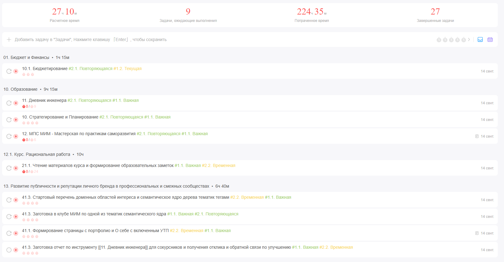 - Планировать на них в следующий раз больше времени, столько сколько фактически ушло в предыдущий отрезок