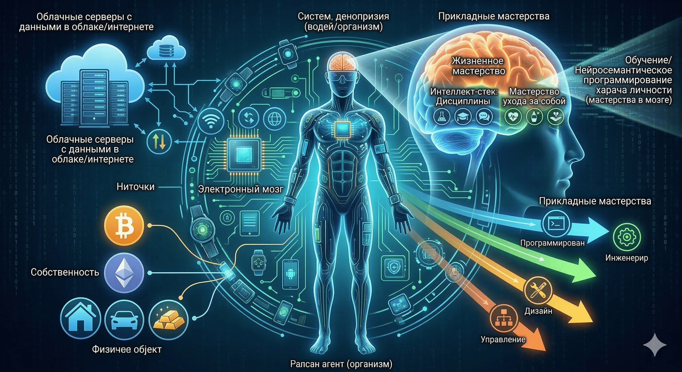 - Экзокортекс - это нулевой уровень операционной системы агента (сначала организм/тело, потом экзотело/экзокортекс, и на них уже личность), который важно рассматривать как триаду “железо+операционная система+софт”. Методы познания (блок ACQ) и синтеза (блок SYN) оперируют смыслами, но они физически разворачиваются на базе экзокортекса. Если инфраструктурный слой деградирует (потеря файлов, сбой операционной системы, утрата криптографических ключей, переполнение кэша), все вышестоящие интеллектуальные процессы останавливаются. У меня же мастерство пользователя экзокортекса не выше обычного пользовательского (потому что я никогда не рассматривал железо+софт как экзокортекс), и надо ставить задачу по его фундаментальному повышению (сюда же криптограмотность и кибербезопасность). Вот почему у меня было желание читать книги по макбуку и смартфону, их операционным системам и отдельному софту. Но это инструменты, поддерживающие методы, поэтому начинать надо с методологии, дисциплин и только потом - инструменты и технологии.