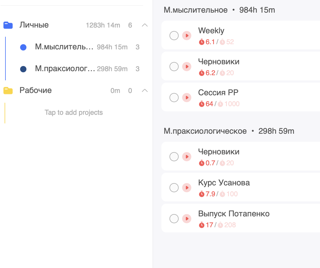В качестве гипотезы перевёл в трекере задачу по производству программы с Потапенко в проект праксиологического мастерства. Там оно явно эксплуатируется в роли экономиста, поддерживающей прикладные роли автора сценария/ведущего (создаётся же оно в рамках курсов Усанова и чтения книг). Там, конечно, путаница из личных и рабочих проектов, где одновременно я и внешняя роль, но разберёмся после рабочего развития. Трекер ощутимо разгрузился, теперь в нём нет задач по рабочим проектам (что ближе к правде, так как у меня фактически нет рабочих проектов, а те, что есть, для тренировки мастерств):