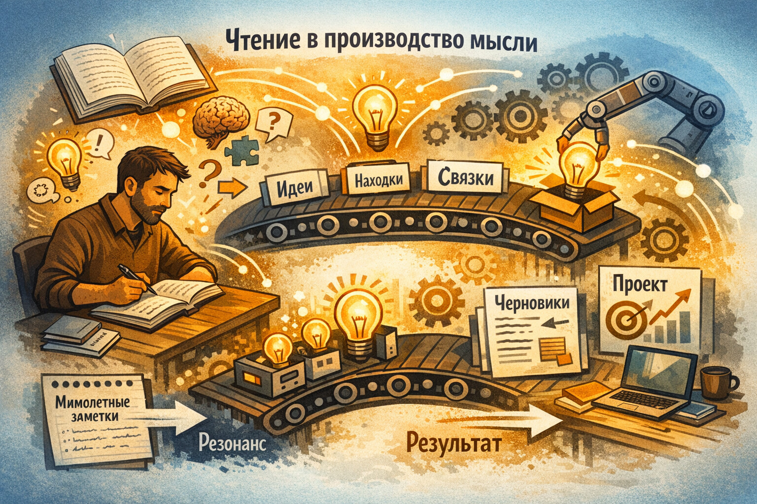 - Систематическое медленное чтение — это не «читать медленно ради медленности», а операционный режим, в котором чтение становится сырьём-входом в производство мыслей.