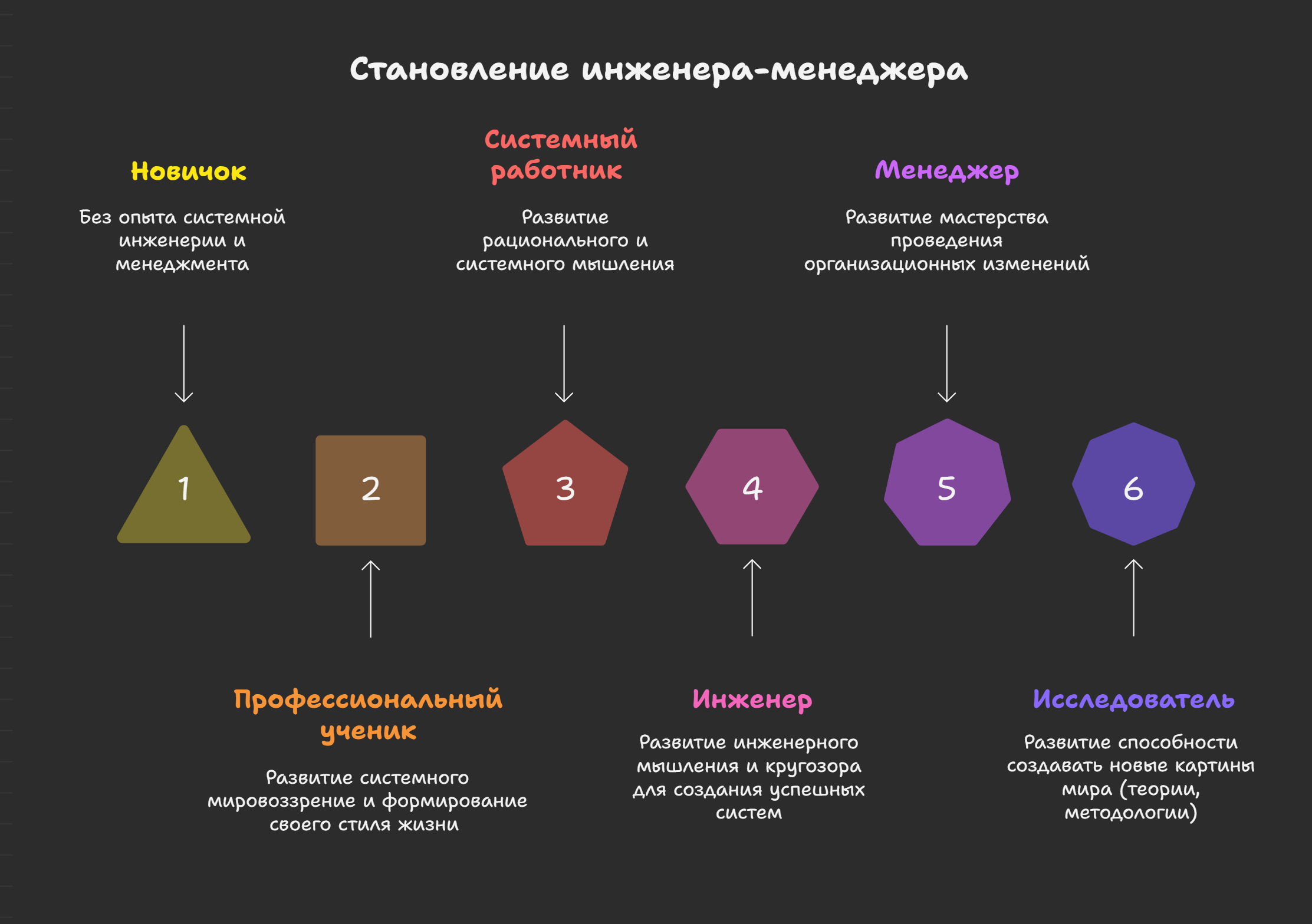 Мастерство начинается с мировоззрения. В основе мастерства инженеров-менеджеров лежит фундаментальное (системное, рациональное) SoTA-мышление, которое позволяет им быстро разбираться с проблемными ситуациями. Первым делом мы усиливаем интеллект инженеров-менеджеров в нашем сообществе, а затем даём инженерный и менеджерский кругозор, который позволяет им разбираться с типовыми инженерными и менеджерскими задачами. Инженеру-менеджеру важно уметь: