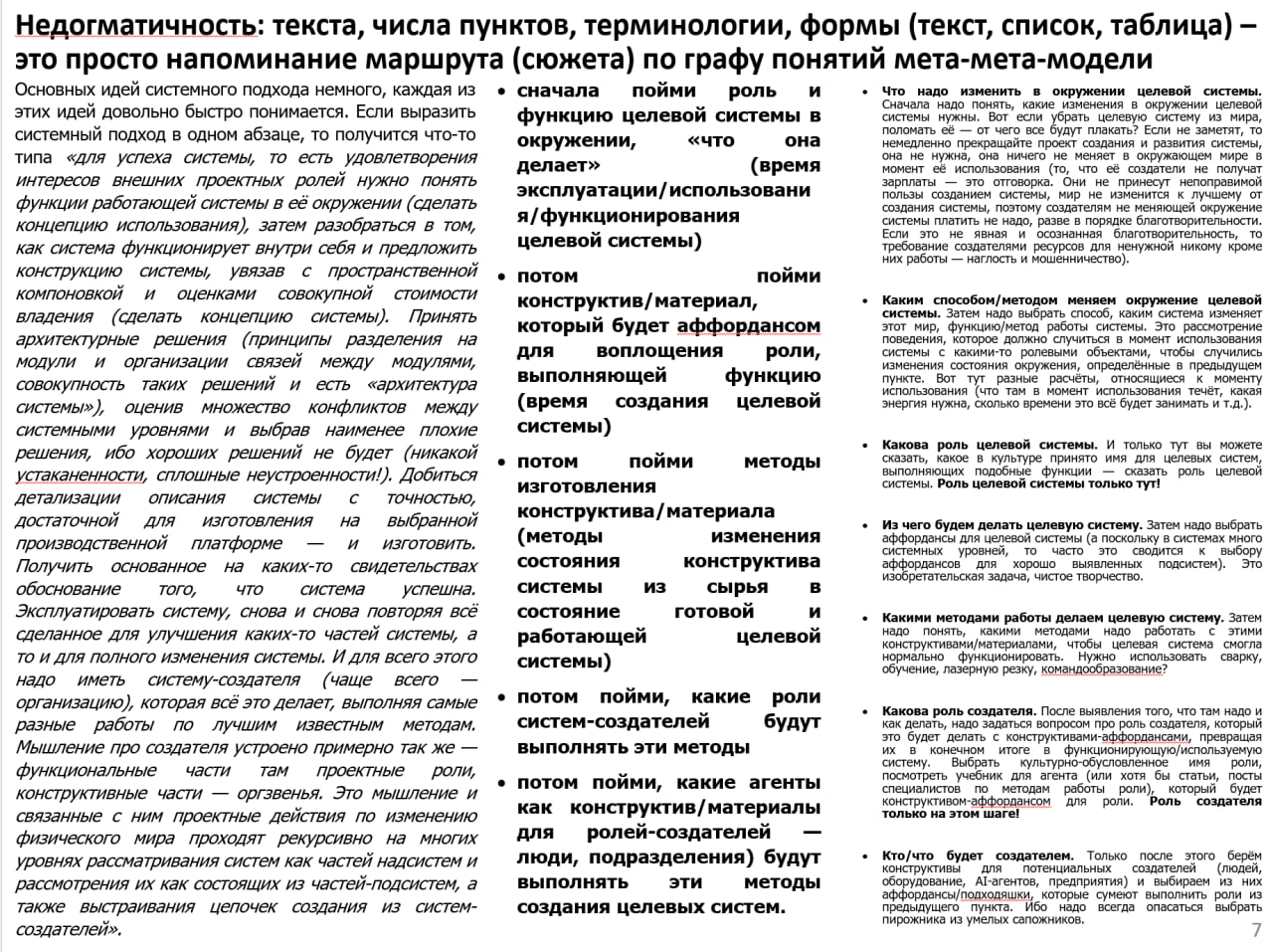 Системное отношение к миру просто означает SoTA способы выбора объектов внимания на разных системных уровнях, понимания, что этих уровней много и они могут выделяться разными способами, а на каждом уровне при этом строятся свои описания по дисциплинам разных предметных практик, исполняемых разными деятельностными ролями.