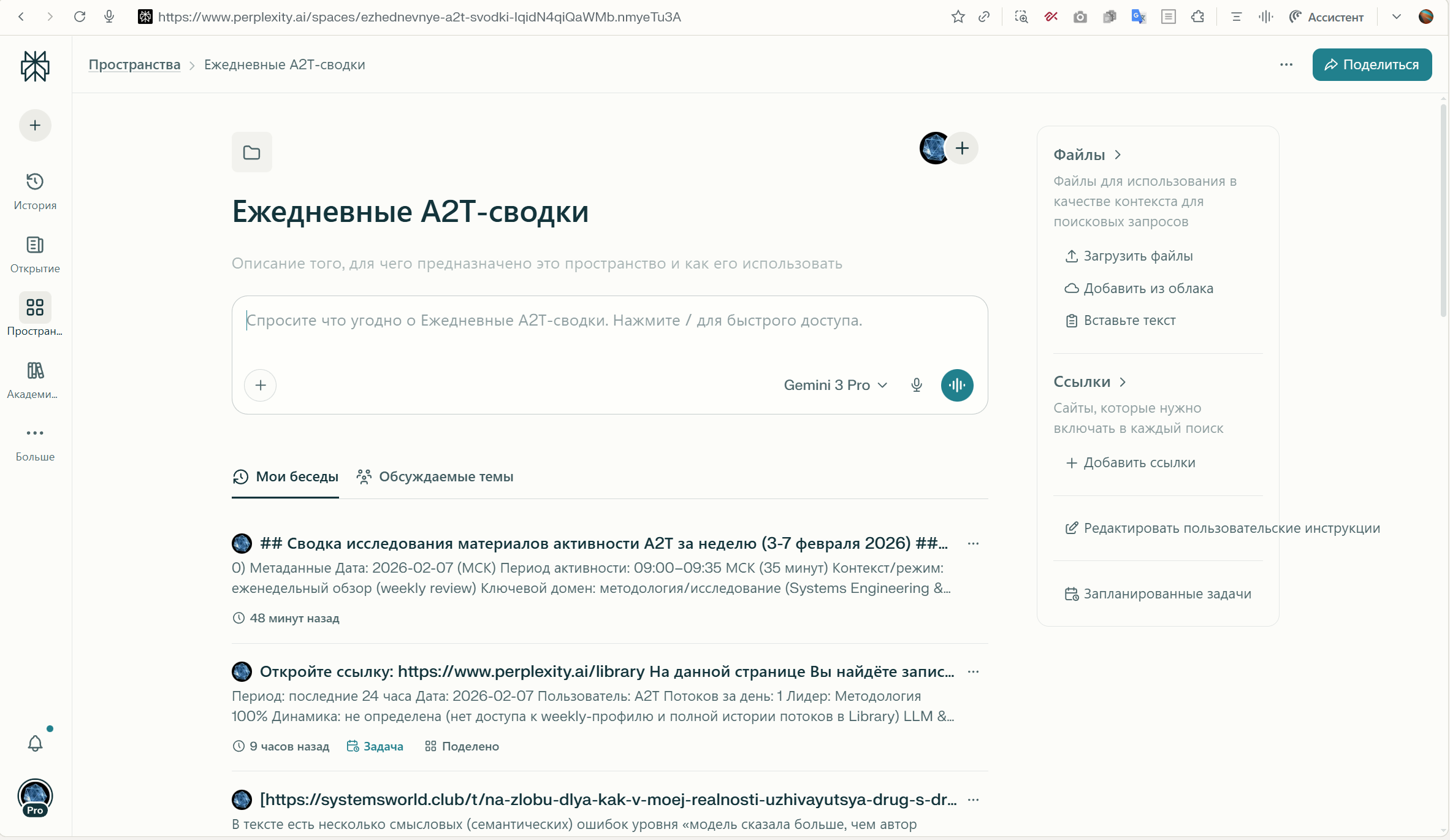 Целевое хранилище: Perplexity Spaces (Ежедневные А2Т-сводки)