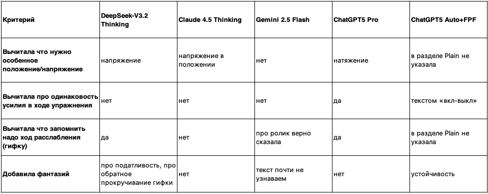 Яндекс отказалась отвечать (единственная кто сказал - не знаю, а не стала делать “любой ценой”), ее в таблице нет. Читать прям аккуратно может ChatGPT5 Pro, но это долго.