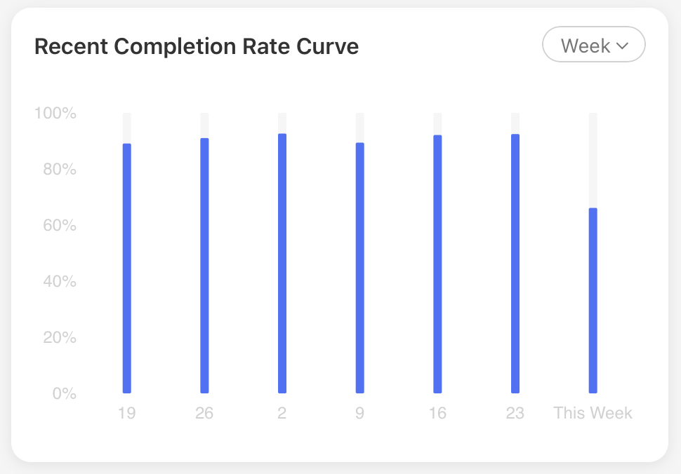 Вот чарт из tick tick показывающий, какой процент задач я выполнил из запланированных за неделю. ~ 90%
