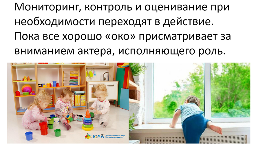 В онлайн-курсе "Образование для образованных 2020" А.Левенчук привел аналогию с воспитателем. Дети играют под надзором воспитателя. Воспитатель преимущественно в такой момент выполняет функцию, которую мы приписываем самоконтролю. Пока дети играют в пределах допустимого воспитатель-самоконтроль бездействует. Но если кто-то из малышей полез ножницами в розетку или на подоконник, воспитатель-самоконтроль обнаруживает несоответствующее поведение и задействует другие роли и практики, чтобы устранить проблему.
