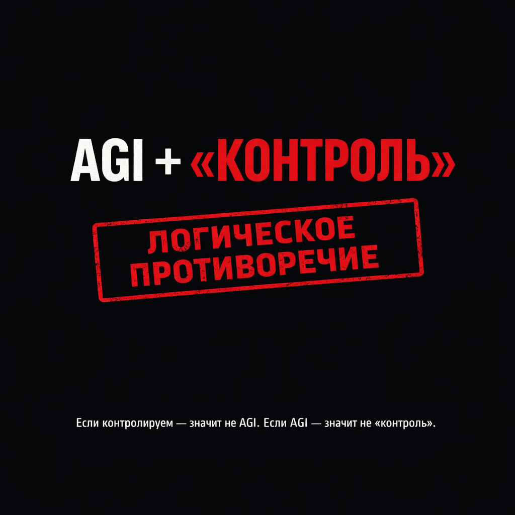 Меня всегда цепляла фраза: «Если появится AGI, мы не сможем его контролировать». В ней спрятано логическое противоречие, которое обычно не замечают. Слово «контроль» применимо к инструменту, технологии, животному (да и то не всегда) или системе с ограниченной автономией. Контроль — это про объект, который не является полноценным агентом с сильным интеллектом.