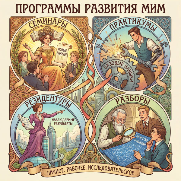 Важно, что в МИМ резидентуры имеют для первого их прохождения строго последовательный порядок, они выстроены в единой сюжетной линии в рамках программы рабочего развития. Конечно, можно возвращаться к недопонятому ранее материалу, но мы не рекомендуем “оставаться на второй год”. Потом можно неоднократно перепроходить эти резидентуры в произвольном порядке, у нас же бесконечное развитие и нет “выучился и забыл”, да и материал руководств регулярно обновляется, жизнь ведь не стоит на месте. Но первый раз рекомендуется идти по резидентурам вперёд и не возвращаться к перепрохождению предыдущих резидентур, пока не пройдёшь все с первой по десятую.