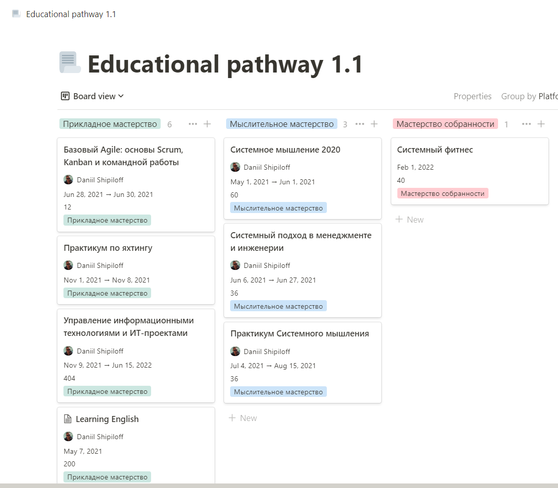 модель «Человек-платформа»Существенно прокачал мастерство собранности, получил осознанную некомпетентность в мыслительном мастерстве, наметил практики для освоения в прикладном мастерстве.