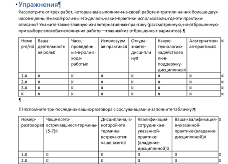 15. Проходить курс системного менеджмента программистам будет чуть легче, чем многим остальным студентам: курс включает в себя упражнения по моделированию организаций ("мышление моделированием"). Особенность тут в том, что моделирование даётся в форме заполнения табличек, колонки табличек соответствуют типам объектов, которые нужно находить в реальной жизни. Программисты хорошо работают с типами. Вот пример такой таблички: