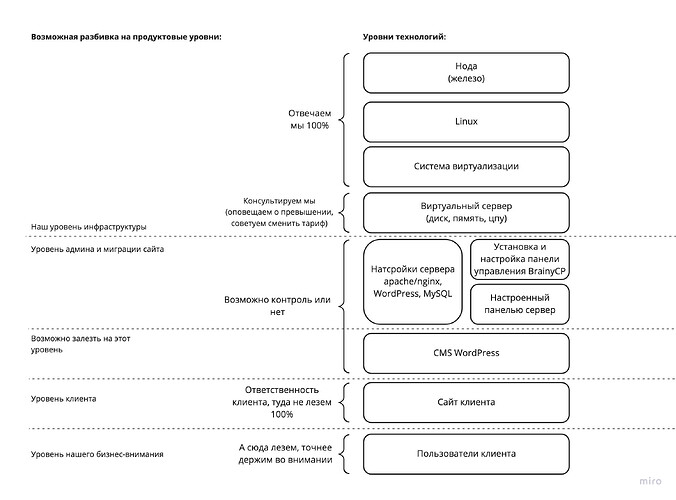 Можно предоставлять базовый виртуальный сервер со всем его обеспечением (бекапы, стабильность работы, защита от DDoS и т.п.), а все что идет дальше (панель управления вирт сервером, настройки сервисов, панель управления сайта, сайт) - ответственность клиента. Но как в аналогии молотка и "забитых гвоздей" оказывается, что клиенту часто нужен рабочий сайт и он не хочет возиться с настройкой виртуального сервера.