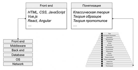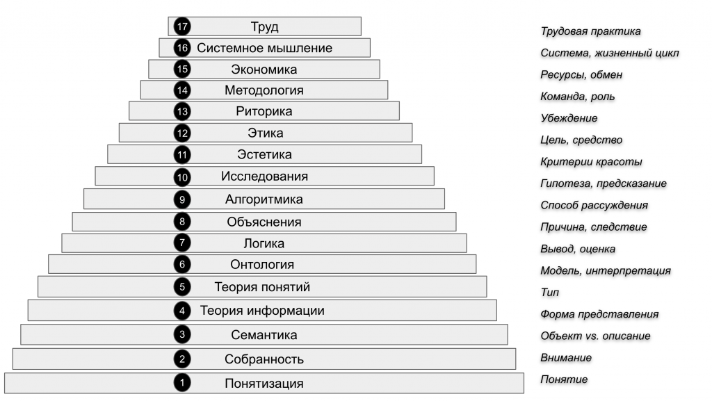 [8] Организация дисциплин стека в виде пирамиды на Рисунке 1 отражает тот же кумулятивный принцип: идею последовательного включения дисциплины уровнем ниже в дисциплины более высокого уровня.
