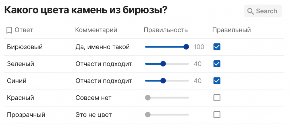 В большинстве случаев в тестах есть множество правильных ответов. И это не случайно: резко уменьшается игра в “угадайку”, и кроме того студентом понимается, что в жизни многие формулировки одного и того же бывают разными.