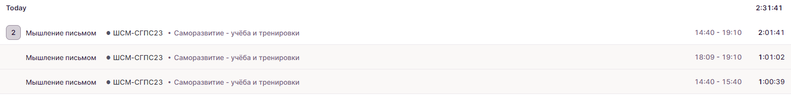 Именно вопрос важности меня и зацепил больше всего. Размышления о результатах инвестирования времени второй день подряд проявляются в реальном мире путём отказа от лишних действий. Так легко говорить “нет” ещё никогда не было! В частности, убрал сплошной хронометраж. Оставил именно инвестирование, учёт времени на курс, отдельно потери. Финальной мыслью для себя отметил, что некоторой заменой учёту может стать режим дня. Точнее, правильный режим сам установится вследствие многократных повторений, просто войдёт в привычку.