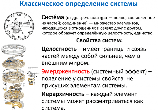 Но, прежде чем говорить о современном понимании "системы" обратимся к классическому определению[2]. Большинство системных методологий подразумевают под системой материальный, физический объект. В то же время в бытовом употреблении под "системой" могут пониматься какие-нибудь классификации[3], теории и методы[4], некоторые свойства и нормы жизни[5].
