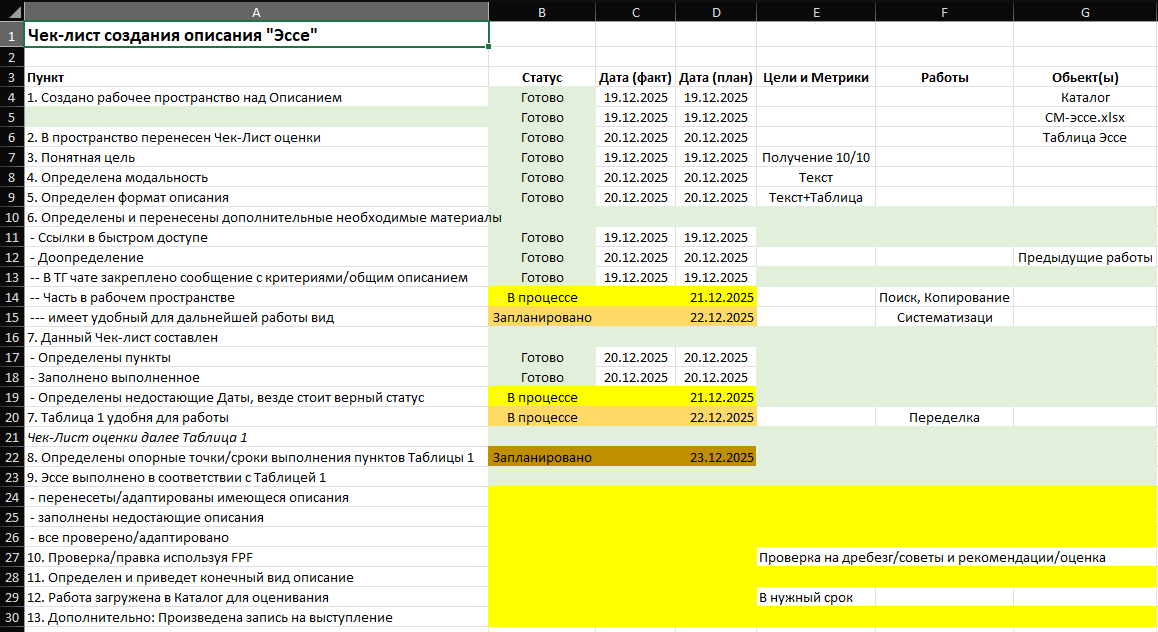 В ежедневной практике составляю планы/чек-листы поэтому вопрос формата описания не стоял. Плюсом уже была такая потребность.