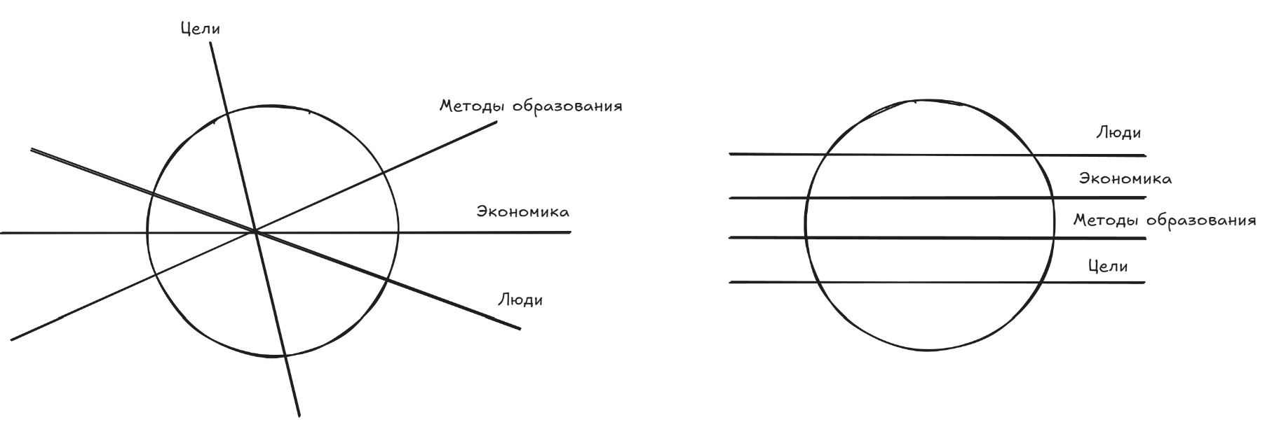 Директор на работе периодически приводит такую схемку, когда объект нашего рассмотрения как-то нарезается. В этот момент звучит фраза, что-то типа “объект рассмотрения можно нарезать по разному, будут разные срезы, естественно”
